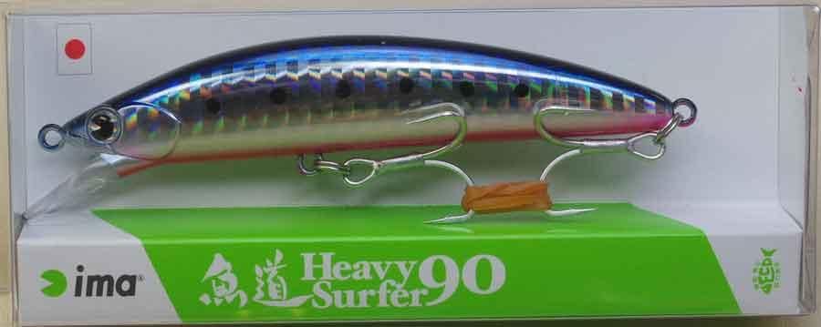 90mm/28g ヘビーシンキング/レンジ 100〜120cm/フック ST-46 #6 アクション スラローム&ウォブンロール! 誕生日 2012/5/10 平均70m(テスト・無風時)という圧倒的な飛距離を叩き出す3D戦略的ミノー! 広大なオープンエリアであるサーフで空中、海中で常に迫り来る三次元の圧力に対して素晴らしい抵抗力を持つボディデザインとリップ、そしてサーフで使用するのに実に頼もしい30gというヘビーウエイトは、遙か彼方の未開ポイントを直撃、無防備なターゲットに先制攻撃を加えます。 ■3D戦略的ミノー 飛距離、深度、流れ(カレント)という3つの複合的な要素はサーフの釣りにおいて常に攻略を求められる課題です。 ima 魚道 Heavy Sufer 90は、30gのウエイトから繰り出される圧倒的な飛距離と、ヘビーシンキングの性能、そしてヘビーウエイトを感じさせない軽快なアクションと巻き抵抗、更に横の流れにも強いボディデザインでそれらの課題をクリア。ボトムの起伏やカレントを自在に攻めることが可能です。 ■超重量+ハイボディバランス設計の実現 従来のナブラ撃ちに使用されるような「早巻きでしか使えないミノー」ではなく、ima 魚道 Heavy Surfer90は、極低速のリーリングでもしっかりしたアクションを発生させるハイボディバランス設計を実現。 通常の使用方法だけでなく、引き波の中を漂わせてイレギュラーダートを誘発させるアクションや、重さを生かして横方向の流れに乗せてボトムを扇型に探る「コロガシ」といった応用テクニックをも使用可能にしました。 Made in Japan アイマホームページ