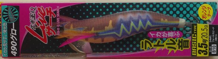3.5号/20.5g オレンジテープ/フォールスピード 3秒/m イカが喜ぶラトル音 イカの「存在を調べ」、「活性を探る」サーチ能力に特化したモデル・・・それが(エギ王Q LIVE サーチ 特長 「動き・色・熱」に加え、「音」の要素で強烈アピール! ラトル音 イカの聴覚を直撃!! (イカが感知しやすい音)を広範囲に響き渡らせる。 ナイフエッジシンカーR テンポ良く攻略する為の「ちょい速フォール」設定。イカの存在を素早くサーチし、効率の良い釣りを展開。 ウォームジャケット(蓄熱布) 生きているベイトを模し、海中での僅かな温度差を生み出すことで、ターゲットに生命感をアピール! ヤマシタホームページ