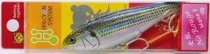 90mm/18g カルティバ STBL-46 #6/ 水面直下〜50cmまでの攻略に最適。スローリトリーブでもキビキビ泳ぎ、干潟などのシャローレンジ狙いに効果絶大。 ●シャッドシェイプのシンキングペンシルで、意図的にリアクションバイトを誘うことができる「女肌ノー・ルージュ」。 ●スローリトリーブでも良く泳ぎ、扁平ボディから繰り出されるフラッシングは効果絶大。そして軽いジャークを加えると、 クルっと身を翻すスピンアクションを見せる。スピン直後、20cm程度フォールさせて喰わせるタイミングを与える。 ●一定の距離を保ちながら追尾してくるスレたシーバスを、スイミングで寄せて、スピンでリアクションバイトを誘い、フォールで喰わせる。水流の変化や障害物への接触によって発生していたイレギュラーアクションを、自分のタイミングで自在に誘発できる操作性は、新たな攻略の可能性を生むことだろう。 ●偶然から必然へリアクションバイトを操る。 アングラーの思い描いたストライクを、実釣にて実現させる快感を味わっていただきたい。 ハルシオンシステムホームページ