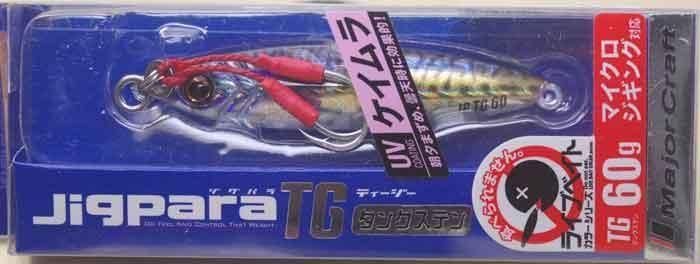 60g UVケイムラ 朝夕まずめ、曇天時に効果的! フォールで喰わせる! バイトを誘発する 圧倒的な飛距離 青物は勿論、根魚などにも効果的。 バランスをやや後方に位置づけ飛行姿勢が安定、鉛製のメタルジグに比べて圧倒的な飛距離を叩き出し、今までのメタルジグでは届かなかったナブラも直撃です。 アクション 後方バランスにしながらもセンターバランスのようなナチュラルアクションで絶妙なバランス。ただ巻きでもしっかりと泳ぐ「ジグパラアクション」はTGモデルでも健在です。 ●タングステンは鉛よりも高比重。 地下速度が速いため真っ先に沈み、ライバルに差を付けます。また、底を取る回数が増える事で、ヒットチャンスが大幅にUPします。 ●コンパクトなシルエットは、ベイトが小さい時や、ハイプレッシャー時にとても効果的です。 ●ただ巻きで、ウォブリング。 ターゲットにしっかりアピールし、効果的にゲームが楽しめます。 ●マイクロジギングに特にお勧めです。リアフックを付けると、控えめなアクションに早変わり。低活性時の切り札として活躍します。 ●塗装が剥がれにくい ■圧倒的飛距離!今まで届かなかったナブラも直撃。 対象魚 シーバス、タチウオ、メッキ、クロダイ、キビレ、ハマチ(イナダ)、メジロ(ワラサ)、サワラ、カツオ、サバ、etc メジャークラフトホームページ