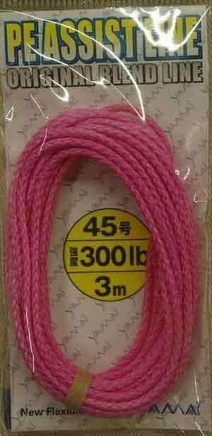 3m 300lb(45号) ■ステキオリジナルPEアシストライン。 ■オリジナルブレイドラインで、素材の樹脂から設計・企画・製造 ■編み込み方等にもこだわりを持ち、独自の張りを持たせる技術で商品を製造。中芯を取って、ニードルを使用し、チチワの作成も可能。 ソルトウォーターパーツに欠かせない一品に仕上がりました。 ステキ針ホームページ