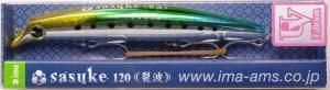 120mm/17g フローティング!(海水) 限定 UV Edition! サスケ120裂波が更なるキャスタビリティの向上、アクションの追求を目的に内部構造を変更し、モデルチェンジを果たしました。ima独自のレードルリップヘッドと、ボリュームのある押しが強いボディから発生するアクションは、磯のサラシや、サーフのカレントプレッシャーにも負けない泳ぎを実現。 波砕け散り、強風吹き荒れる荒磯に潜むヒラスズキや、泡花舞い散るサーフスープでの最後まで安定した泳ぎは特にフラットフィッシュの攻略において最後のワンチャンスを掴み取ることを可能にしたハードシチュエーション攻略プラグです。 タングステンウエイト新採用 高比重のタングステンウエイトを新採用。マス(重心)の集中とスタビライザーとしての機能も果たす3フックとの相乗効果で前傾姿勢の飛躍的な安定を果たしました。外圧に負けない安定した泳ぎと重量の増加によるキャスタビリティの向上にも寄与します。 imaレードルリップヘッド構造 リップ付きルアーとリップレスルアーの利点を併せ持つima独自のカーブを持つレードルリップヘッドを採用。 一体成型による高いボディ強度を誇り、また風切りによるロングアプローチとアキュラシー性能を向上を実現、ブレイクラインを確実に攻略します。 アクション アクションは力強いウォブンロール。レードルリップヘッドが水流を効果的に逃し、強い水押しにも関わらず、引き重りが少ないといるパラドックスを実現。 ガマカツフック/アクション ウォブンロール・誕生日 2004 9/17 ima ホームページ