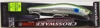 111mm/18g フローティング! 「MAGLOCシステム」+「可変Vオシレート」搭載。 銀幕の道化師。 「水面付近をフラフラ漂うベイトフィッシュ」を演出。 体が大きいがゆえに、追従力の劣るランカーシーバスの格好のターゲットとなる水面直下をフラフラ漂うベイトフィッシュを演出。 この「クロスウェイク」は表層引き波系ルアーの進化形で、デッドスローリーリングによる水面直下トレース時に発生する舵のような引き波(スネークロールウェーブ)が最大の武器。 幾多の試作、フィールドテストを経て、ボラの稚魚が水面直下で発生させる自然で魅惑的な引き波を忠実に再現。 また、「MAGLOCKシステム」+「可変Vオシレート」の相乗効果で同クラスの引き波系ルアーの常識を覆す飛距離と、高レスポンス、レンジキープ力、安定性能を実現。 シーバスが表層でベイトフィッシュを捕食している時、もしくはベイトが表層でザワついている時に威力を発揮する。 超シャローエリアの攻略にも!特に、シーバスが完全にボラの稚魚を偏食しており、他のルアー反応しない状況で是非使用していただきたい。一度使ったら病みつきになることうけあいだ。 有効攻略レンジは、ロッドポジションとリトリーブスピードのコンビネーションにより水面〜最大深度約30センチのレンジをトレース可能。特にハンドル一回転/3秒といった超デッドスローにおける水面への引き波の出方は、まさに弱ったボラそのものだ。 ST-46#4トレブル標準装備。 推奨リトリーブスピード:ドリフト〜ミディアム DAIWAホームページ