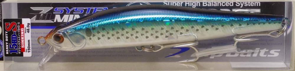 150mm/48g シンキング! 大型魚にターゲットを絞ったZBLシステムミノーシリーズのキングサイズ! 全長15cmという大型サイズながら、他に類も見ないライブリーなアクションを誇ります。このクラスのミノーにありがちなロッドワークやリトリーブに対してワンテンポ遅れるようなもたついた動きを無くし、ルアーを思いのままに操ることを可能にしました。また、完全なサイレントボディとナチュラルなスイム性能にこだわり、狡猾な大型魚に違和感を与えません。 大物のやりとりに的を絞ったヘビーデューティー仕様。メータークラスをターゲットにしているアングラーに最適の最強スペックとアクションです。食わせのアクションの15Fと比較し、15HD-Sはやや強めほウォブリング+ロールアクション。磯やサーフにおいて、風や波に消されてしまわないアピール力を持っています。また、2本のフックをワイヤースルー方式でセット。ターゲットの大きさによって、さらに大型のフックへ交換を可能にしており大物のやりとりに不安感を与えません。加えて、大型スチールウエイトを採用することによって、アクションセンターを調整。アクション時にヘッドを突っ込み過ぎない自然なスイムフォームを実現。オフショアーゲームにおいて、見たきりの激しいターゲット達をヒットに導きやすくしています。 ジップベイツホームページ