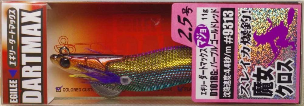 2.5号/11g 沈下独度:4.4秒/m 1異次元のダートアクションを生むジャークベイト系アイポジジョン。アイポジジョンが一般的な餌木と異なり、上方にあることにより、軽いジャークで簡単にダートアクションを引き出す事ができ、フォール姿勢の安定、根掛かりの減少といったメリットも多いです。 2フラッシング効果を最大限に引き上げターゲットを魅了するフォログラムヘッド。 3根掛かりを軽減するスナッグレスカラードシンカー。 4引き重り感を軽減するボディシェイプ。 水流を強く受ける先端部は可能な限りスリムに仕上げ、引き抵抗を軽減しています。安定したフォーリング姿勢の確保に必要なボディ後方部の浮力も充分に確保しています。 5斬新で多彩なカラーパターンでアピール力を高めたハイクオリティーペイント。 6フッキング重視のカスタムカーボンフックを搭載。 フィッシュリーグホームぺージ