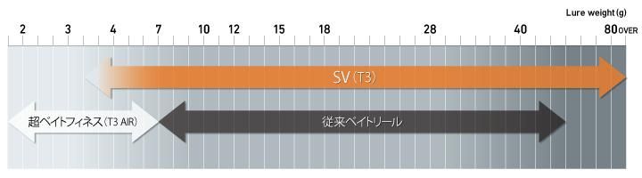 ■ギヤー比 8.1:1■巻き取り長さ 86cm■最大ドラグ力 5kg■標準自重 190g■糸巻量12lb-40〜80m・14lb-35〜70m SV(ストレスフリーバーサタイル)。これまでの”バーサタイル”とは一線を画すコンセプト。 現在、バーサタイル、つまり対応幅が広くオールマイティに使えるモデルとして世に出ているモデルは数多いが、その実、本当に対応幅が広くトラブルなく、どんなシチュエーションでも効果を発揮するものは少ない。 SVの開発において、従来よりDAIWAが持つマグネットブレーキシステムを土台としながら、ベイトフィネスにおけるF1マシンとも言えるT3AIRで培ったエアブレーキシステムの技術を応用し、非常に対応幅の広いブレーキレンジを確保することに成功した。エアブレーキシステムのスプールは非常に軽量に造られているものの十分な強度を保ち、非常にメリハリの利いたブレーキを実現する。対応幅が広いということは、様々なキャストに対し余力を持った対応ができるということ。真の意味で対応幅の広いブレーキシステムを得た時、アングラーはトラブルから解放されることとなる。 DAIWAは、”バーサタイル”を”ストレスフリーバーサタイル”へと昇華することに成功した。 リール・ロッド・ライン・ルアーなど総合プロデュースできるDAIWAだからこそ実現可能な『SV』は、あなたのバスフィッシングをさらに変えていくと確信する。 詳細はこちら→DAIWAホームページ