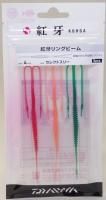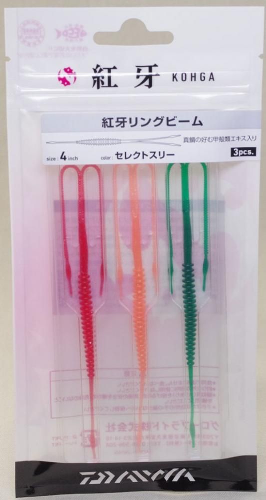 3本入り 伸縮性に優れた高強度スーパーソフトマテリアルを採用したタイラバ専用ワーム。ボディには細かいリブフィンを付け、タイラバヘッドからでる波動をワームの微細動に変えて誘いまくる。ワームセッティングは至って簡単。2本のテールをラバースカートと同じくラバー止めのシリコンカットチューブに通し接続パーツにセット。通常4インチで使用可能だが、テールスリットを裂いてラバーをヘッド側に引けば3.5インチとしても使用可能。さらに執拗に追い続けさせるために、ワームには真鯛が好む甲殻類の匂いをつけました。 DAIWAホームぺージ