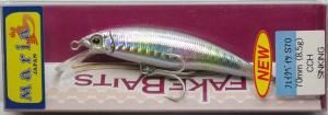 70mm/8.5g/シンキング! 天然素材感/マテリアルフェイク! 立ち上がりの早さ、デッドスローからファーストリトリーブトイッチングやジャークに追随する水絡み、流水域でも平然と泳ぎきる安定性。 プラスチックでありながらバルサやウッド等、天然素材ミノーのようなマテリアルのフェイク感を達成。 本物のベイト感/アクションフェイク! 極めて振幅ピッチの細かいベイトライクなアクションは泳質の変化が少なく本物のベイトのようなゆったり泳ぐスピードから逃走スピードまで、泳ぐ速度に応じた動きを再現、常にタイトなアクションはスレさせることが少なく文字通りの魚を騙し続けます。 ライブ感覚/リアルフェイク! どんなルアーのも言えることですが、手に取ったときの「釣れそう・・・」と言う期待感はアングラーのモチベーションを保つ大切な要素。フェイクベイツの研ぎ澄まされたアクションに外見のリアルさが加わることで、「リアルフェイク」と言う言葉がより身近に感じられることでしょう。 マリアホームページ